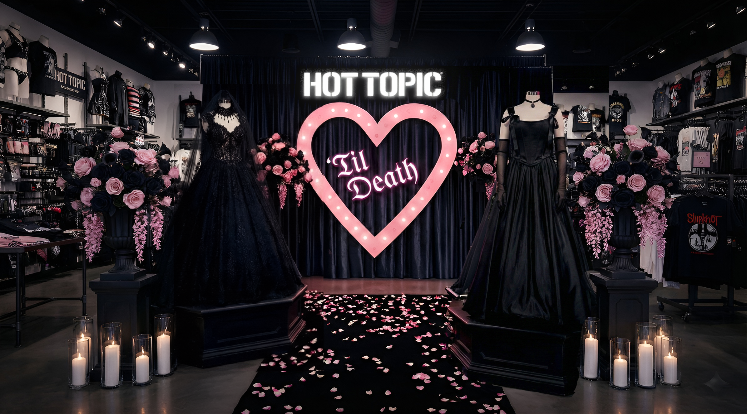 The Hot Topic kids of the early-mid 2000s may be grown up and getting married, but they haven’t lost their edge. That’s why Hot Topic is crashing into the wedding scene with the ‘Til Death bridal collection to make sure their weddings are anything but traditional.
